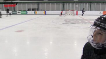 Kathleen gives a private lesson that focuses on a “J” start with crossovers into a stride. First without a puck then with one, the skater starts with one...
